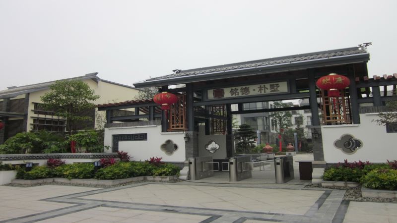 銘德·樸墅從營銷中心的設計到全小區的施工始終追尋中國傳統文化的腳步,沿襲中國古典園林的清逸風格,繼承嶺南園林的造園手法。漫步青石步道,聽疊級水景潺潺有聲,看鏤空景墻,一幅山幽、水碧、樹奇、氣清、樓雅的中國畫。白墻黛瓦、馬頭墻的設計及后期施工深化,其鮮明的造型和色調特征與水墨畫講求的形與色如出一轍。